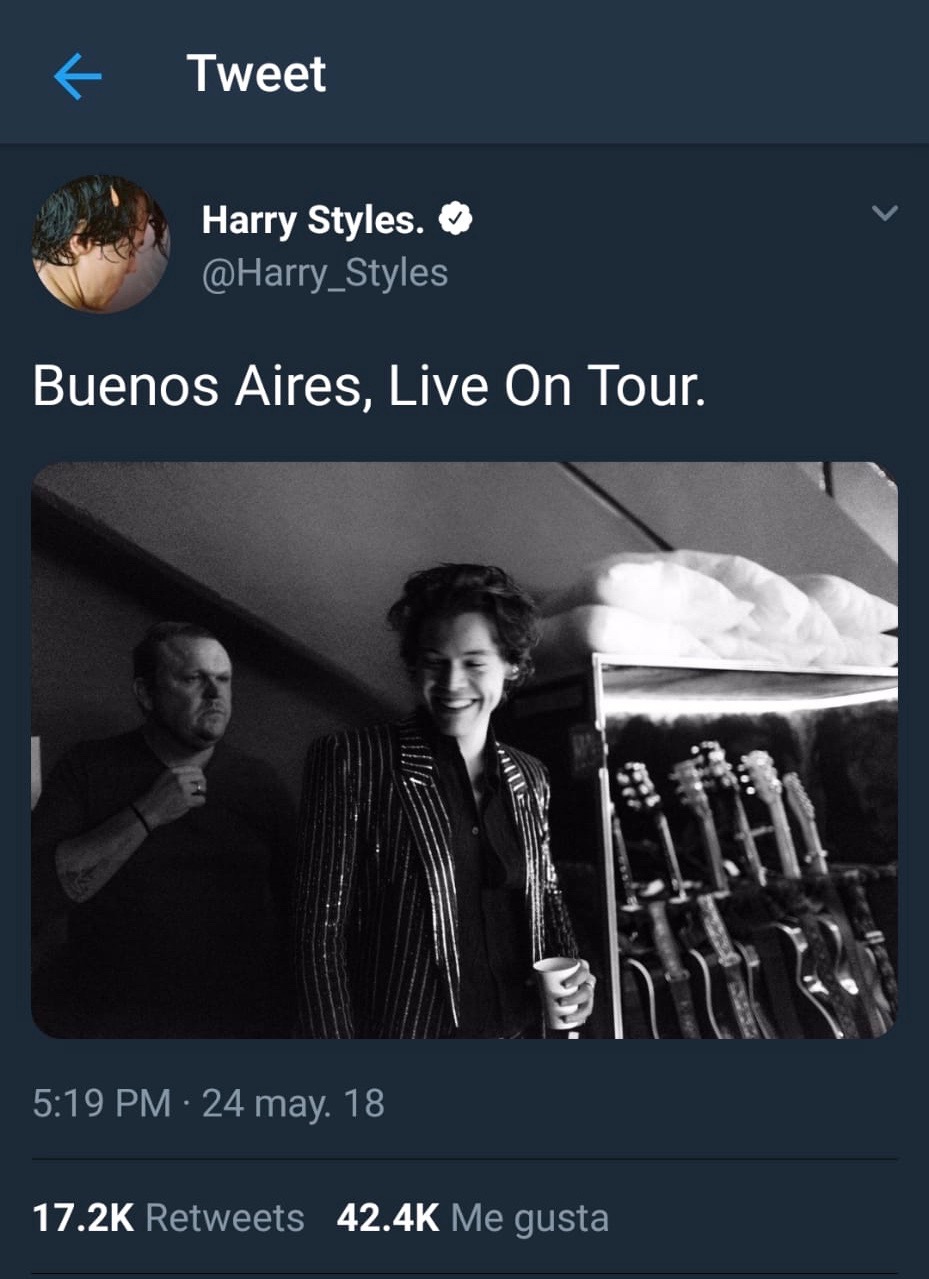 Este será un show inolvidable para todos sus fans, pero estamos muy seguras que también lo va a ser para Harry "Voy a decir algo que no suelo decir, han sido el mejor show" esas fueron sus palabras, y su último tweet hasta ahora dice “Buenos Aires, you just blew my mind. Thank you. I lovedevery second. H” (Buenos Aires, me acabas de volar la cabeza. Gracias. Ame cada segundo. Harry).